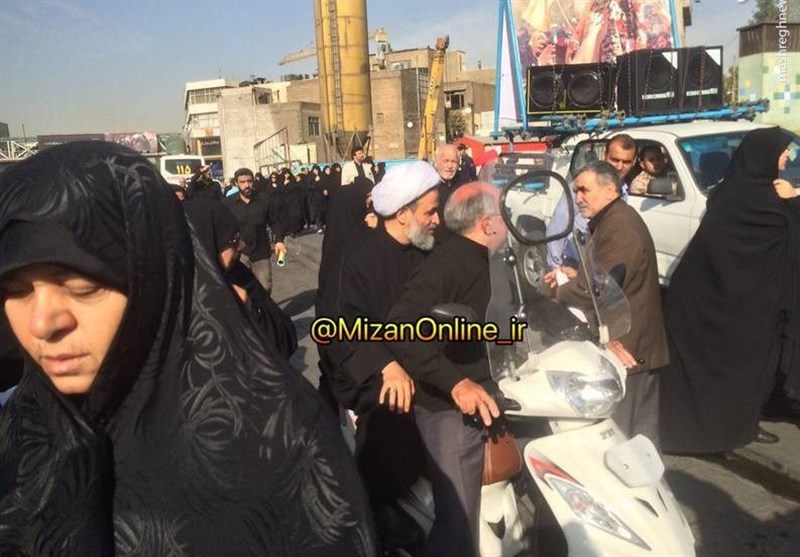 حضور حجت الاسلام پناهیان با موتورسیکلت در تشییع پیکر شهید حججی