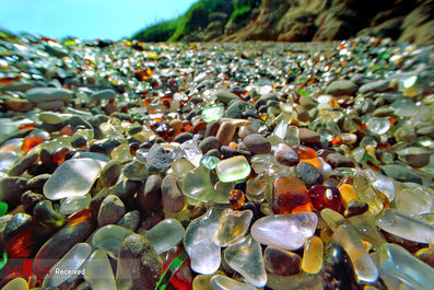در سواحل مندوسینو در کالیفرنیا، ساحلی وجود دارد که به دلیل ظاهر خاصی که دارد به آن ساحل شیشهای میگویند.