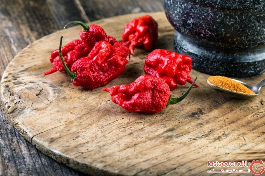 خب... رسیدیم به شماره یک. امپراتورِ کبیرِ فلفل‌های تند. کارولینا ریپر، تاجِ تندترین فلفل تاریخ دنیا را در نوامبر سال ۲۰۱۳ و با کنار زدن رقم نجومی و ۲ میلیونیِ عقربِ مُروگا، بر سر گذاشت و به اندازه ۲۰۰۰۰۰ واحد هم از آن جلو زد. این فلفل، با آن قیافه واقعا ترسناک و زننده،‌ بافتی خشک و چروک و دُمی که شبیه دم عقرب‌های سنگین وزن ترینیدادی است (که در این مورد به نام تیغِ ریپر نامیده می‌شود)، نسبت به عقربِ مُروگا، فقط ویژگی طبیعی بودن را کم دارد. ریپر، در کارولینای جنوبی، توسط اِ‌د کِری صاحب کمپانی PuckerButt Pepper و از طریق ترکیب یک فلفل کارائیبی تند استثنائی از جزیره سنت وینسنت، با یک فلفل از پاکستان، مهندسی و تولید شده‌ است. اگر جراتش را دارید، تمام محصولاتی که بر پایه ریپر تولید شده‌اند، در وبسایت کمپانی، در دسترس و قابل خرید هستند. اما باید گفت که واقعا باید از ریپر ترسید.
