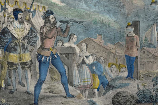 ویلیام تل یک کماندار مشهور سوییسی است که به خواست یک حاکم ستمگر مجبور شد به سمت سیبی که روی سر پسر خودش گذاشته شده بود تیراندازی کند. تیر پرتاب شده توسط تل به هدف خورد و سوییسیها به این عمل قهرمانانه به عنوان آغاز جنبش سوییسیها برای تبدیل شدن به یک ملت مستقل توجه میکنند. اگر چه گمان میرود که این واقعه در سال ۱۳۰۷ میلادی صورت پذیرفته باشد، اما محققان هنوز مدرکی دال بر این که داستان ویلیام تل چیزی بیشتر از یک داستان ساختگی الهام بخش بوده است پیدا نکرده اند.