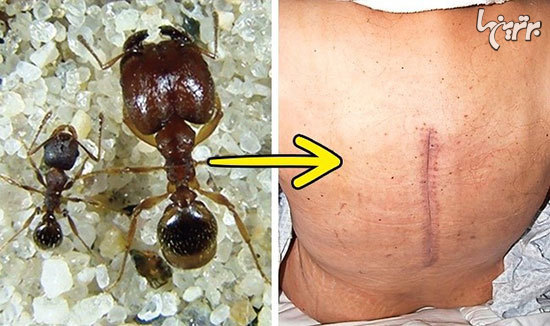 ۳- مورچه‌های سرباز برای بخیه زخم استفاده می‌شدند.