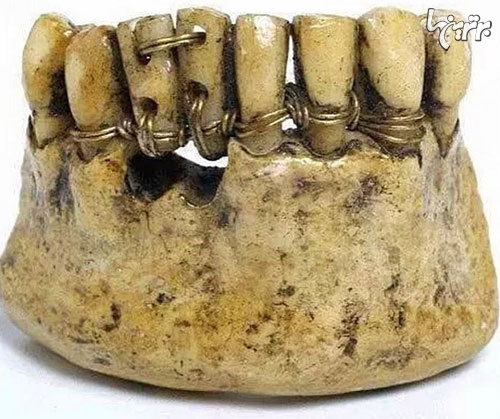 فکی که در بالا نشان داده شده است مربوط به فردی در قلمرو روم باستان و مربوط به ۲۵۰۰ سال پیش است. در سراسر تاریخ، مردم از روش‌های متفاوتی برای جایگزینی دندان‌ها استفاده کرده اند. برای مثال در طی تمدن روم باستان دندان‌های افراد را بعد از مرگ به افرادی که دندان‌های آن‌ها شکسته و کنده شده بود، به روش بالا متصل می‌کردند. در قرن‌های بعد افراد فقیر دندان‌های خود را برای پیوند به ثروتمندان جامعه می‌فروختند.