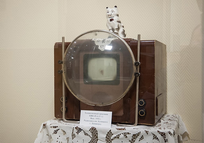 این یک تلویزیون سیاه و سفید مدل KVN-۴۹ است که در دهه ۱۹۵۰ در شوروی تولید شده و اولین تلویزیون این کشور است که به تولید انبوه رسیده است. در حدود ۱۰ سال، بیش از ۲.۵ میلیون دستگاه از این مدل در این کشور فروخته شد.