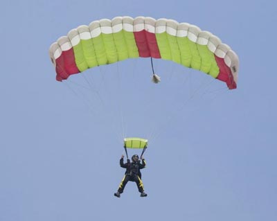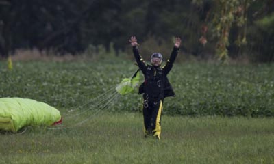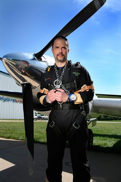 بدلکار 47 ساله که از 6 سالگی نزد پدرش مهارتهای بدل کاری را یاد گرفته، در حالی که در 70 مایلی جنوب غرب شیکاگو کمربندی نیز بدور بدنش پیچیده شده بود، از ارتفاع 4410 متری به پایین پرید.