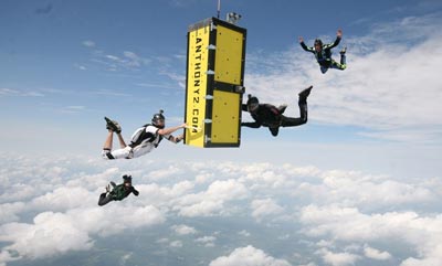 سپس وی را با هواپیما به آسمان اوتاوا درایلینوی برده و وی را که داخل کابین چوبی بود به پایین انداختند.آنتونی باید بلافاصله قفل ها را باز کرده و با فرار از داخل کابین، چتر خود را باز می کرد تا زنده بماند.