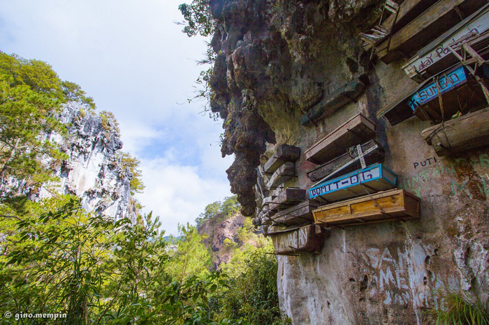 تابوت‌ها در اشکال مختلفی وجود دارند، اما عمدتا در یک قطعه چوب، معمولا یک تنه درخت توخالی کنده‌کاری شده اند. تابوت‌ها روی تیرهایی روی دیواره عمودی کوه‌ها قرار می‌گیرند. همچنین در غار‌های دیواره صخره‌ها یا پیش‌آمدگی‌های سنگی طبیعی قرار می‌گیرند. در ساگادا، جزیره لوزان فیلیپین، تابوت‌ها یا با میخ به صخره کوبیده می‌شوند یا آن‌ها را با طناب گره می‌زننند. هر تابوت حدود ۲۵۰ کیلوگرم وزن دارد، بنابراین بالابردن آن از صخره‌ها به تلاش زیادی نیاز دارد.