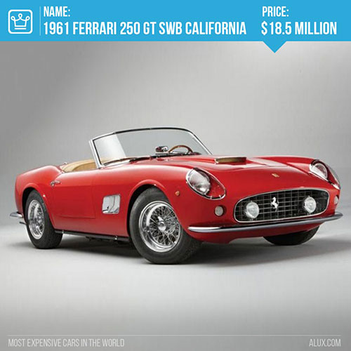 فراری ۲۵۰ جی. تی اس. دبلیو. بی کالیفرنیا اسپایدر مدل ۱۹۶۱، با قیمتی برابر با ۱۸.۵ میلیون دلار