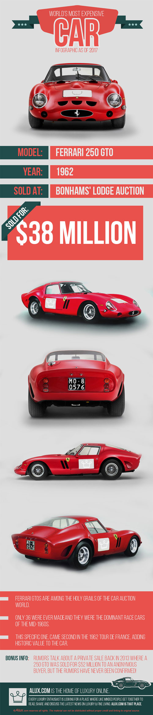 جالب است بدانید آماری که برای شما گفتیم، آمار رسمی گرانترین خودروهای دنیا است و این خودروها نیز بازارسیاه دارند و گفته میشد مدتی پیش یک فراری ۲۵۰ جی. تی. اُو با قیمتی نزدیک به ۵۲ میلیون دلار به فروش رسیده است، اما از آنجایی که هیچ سندی در خصوص این معامله وجود ندارد نمیتوان به این آمار استناد کرد.