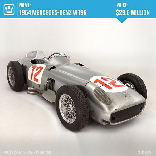 خودروهای ساخت دست مرسدسبنز بهعنوان گرانترین خودروهای دنیا شناخته میشوند، اما اگر فکر میکنید مدلهای جدید این خودرو در فهرست گرانترین خودروهای دنیا قرار گرفتهاند سخت در اشتباهید چرا که گرانترین مرسدسبنز دنیا، یک خودروی مدل دبلیو ۱۹۶ (Mercedes-Benz W ۱۹۶) محصول سال ۱۹۵۴ است.