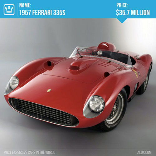کارشناسان طراحی خودرو، فراری ۳۳۵ اس (Ferrar ۳۳۵ S) را یکی از زیباترین خودروهای دنیا به لحاظ طراحی و زیباشناختی میشناسند و همین امر هم باعث شده تا این خودرو به لحاظ قیمت در رتبه دومین خودروی گرانقیمت دنیا قرار گیرد. این خودرو بسیار نایاب است و فراری تنها ۴ دستگاه فراری ۳۳۵ اس ساخته شده و خودرویی که از آن صحبت میکنیم نزدیک به ۴۰ سال در اختیار یک کلکسیوندار بسیار ثروتمند فرانسوی قرار داشت.