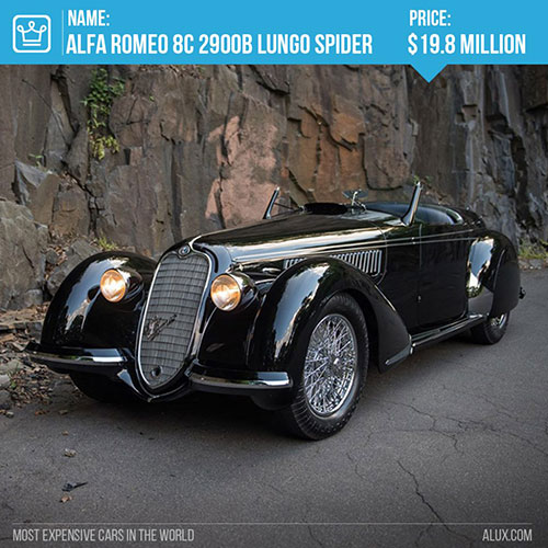 آلفا رومئو ۸. سی ۲۹۰۰. بی لانگو اسپایدر مدل ۱۹۳۹، با قیمتی برابر با ۱۹.۸ میلیون دلار