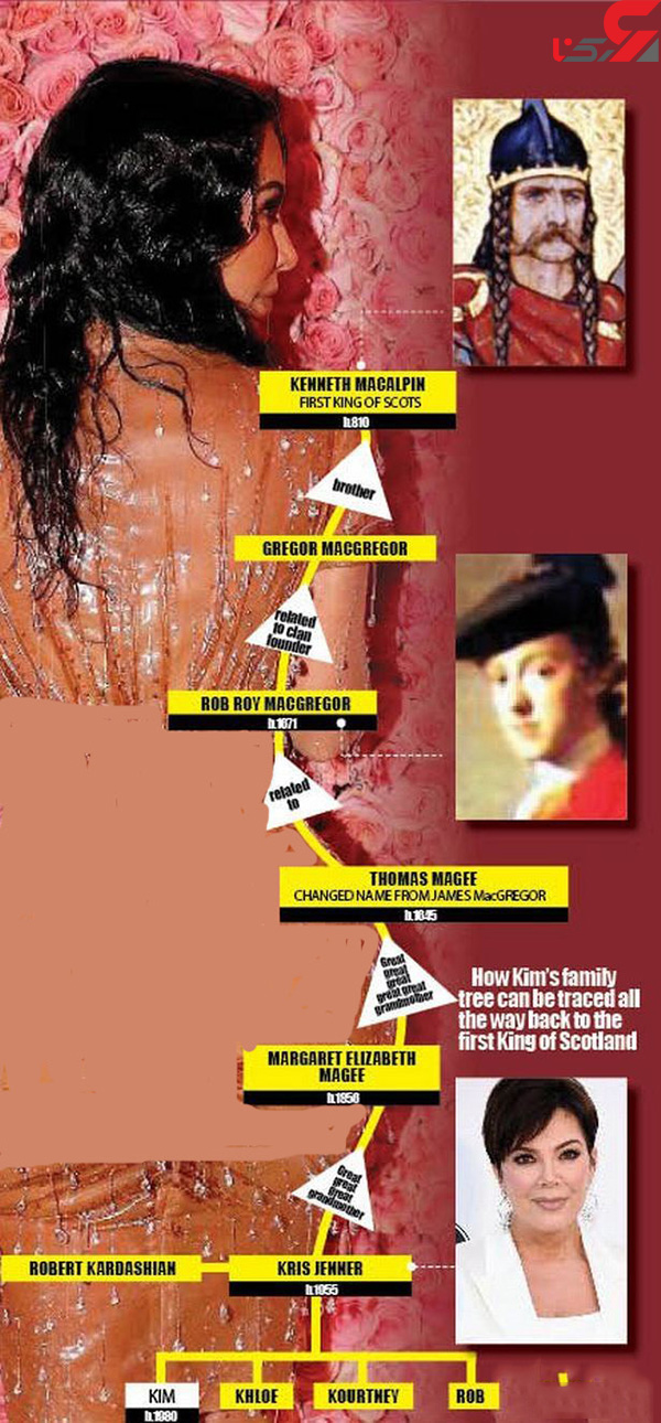 پیگیریهای یک روزنامه نگار اسکاتلندی درباره اصل و نسب و شجره خانوادگی کیم کارداشیان ستاره تلویزیونی آمریکا، نتایجی شگفت آور را نشان داد که که مربوط به خانواده سلطنتی اسکاتلند بود.