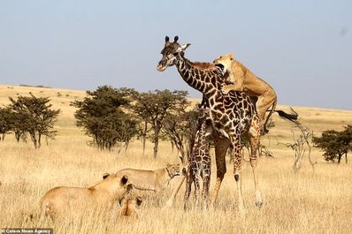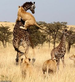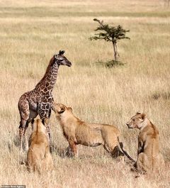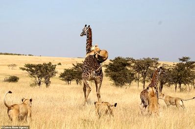 جیمز نامپاسو، ۳۸ ساله در سفر به کنیا از تلاش ناموفق یک زرافه برای نجات فرزندش از دست شیرها عکاسی کرده که در زیر میبینید.