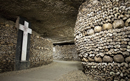 این دخمهی تاریک و عمیق و چندش آور، شبکهای از تونلهای طویل در زیر پاریس است که در حقیقت، آرامگاه نزدیک به ۶ میلیون نفر میباشد. باورتان میشود؟! بسیاری از این افراد ناشناس هستند، اما استخوانها و جمجمهی این افراد، در بین صدههای ۱۸ و نوزده، به این دخمه آورده میشود. امروزه و با چینش جالب و ترسناک استخوانها و جمجمه ها، این مکان به یکی از مکانهای گردشگریِ پاریس تبدیل شده است.