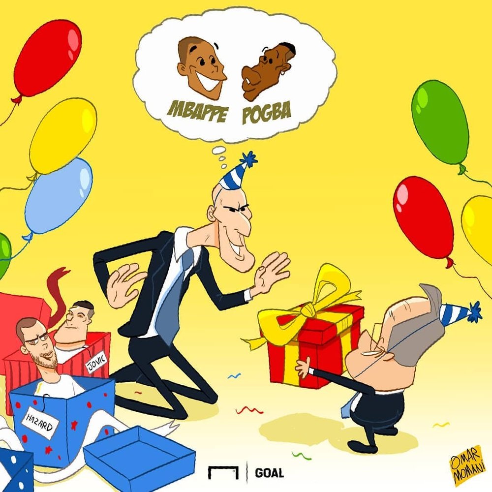 باشگاه رئال مادرید در بازار نقل و انتقالات عملکرد خوبی داشته است؛ با این حال مربی فرانسوی همچنان به دنبال جذب پوگبا یا امباپه است. سایت گل به مناسبت تولد 47 سالگی زیدان، با انتشار کارتونی از عمر مومنی به این موضوع پرداخت.