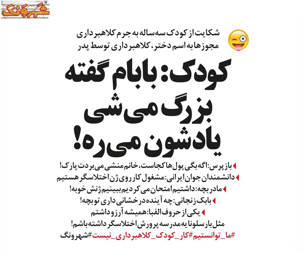 ماجرای باز شدن پای کودکان به تخلفات مالی که با صدور مجوز ساخت و ساز به نام کودک سه ساله و کلاهبرداری والدین او بر سر زبانها افتاد، سوژه طنز «شهرونگ» شد.