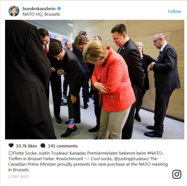 جلسه رهبران جی7 (گروه هفت) در بیاریتز فرانسه برگزار شد و نخست وزیر کانادا (جاستین ترودو) جورابهای صورتی معروفش را به پا داشت.