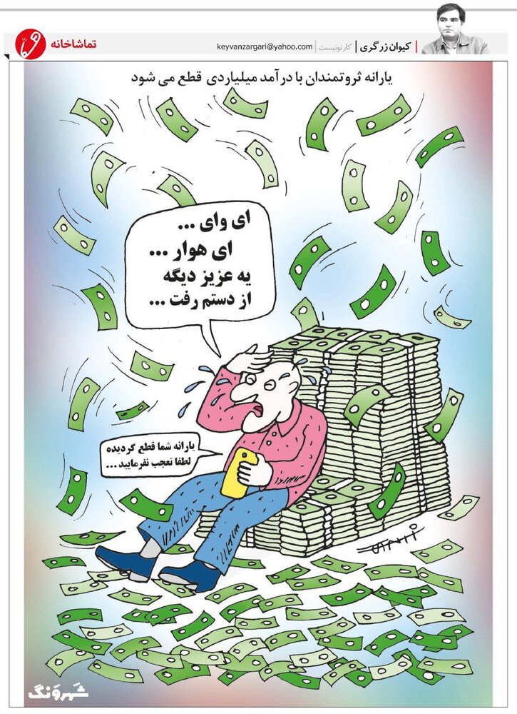 آغاز اجرای طرح حذف یارانه ۲۰۰ هزار نفر از ثروتمندان، سوژه کارتونی از کیوان زرگری در صفحه طنز و کارتون شهرونگ شد.