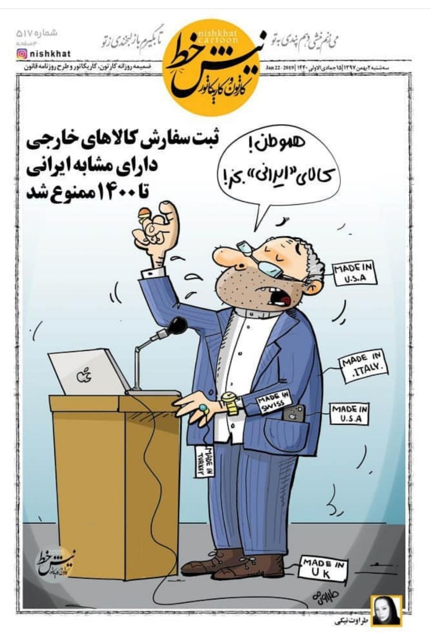 مسئولینی که به خاطر درآمدهای چندصدمیلیونی همه زندگیشان کالای خارجی است، برای مردم داروی دیگری تجویز میکنند! این موضوع سوژه کارتون طراوت نیکی در نیشخط شد.