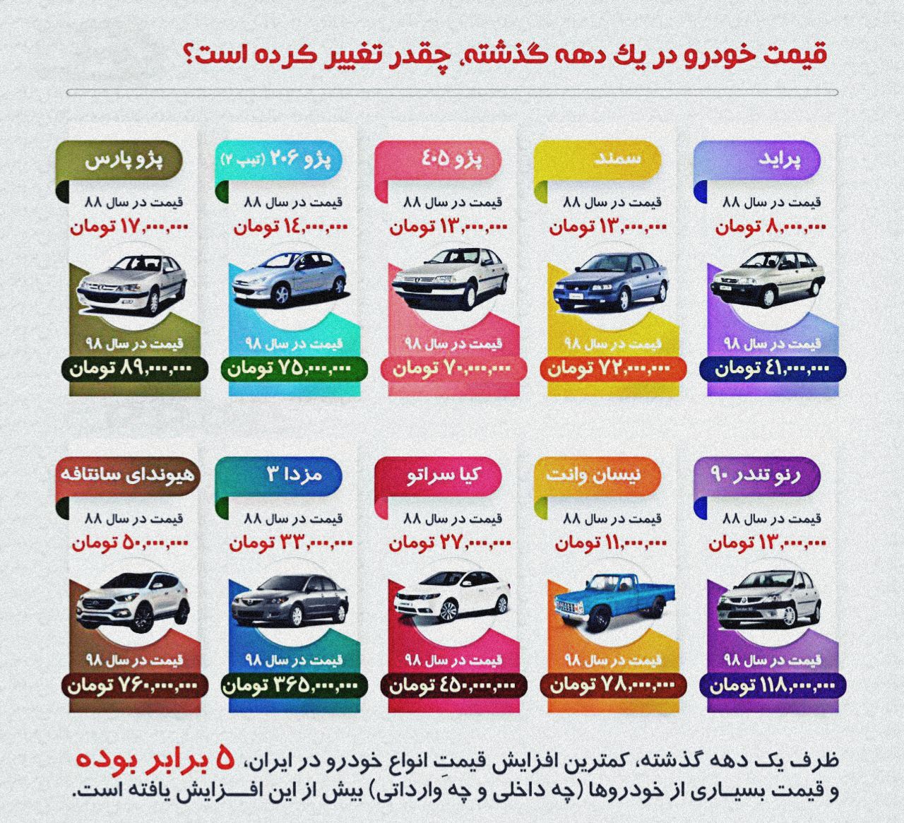 مقایسه قیمت خودروها در سال ۸۸ با ۹۸