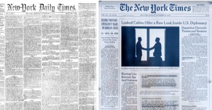 بدون شک روزنامه ها در طول تاریخ تکامل یافته و تغییر کرده اند. این تغییرات نه تنها در بخش و سبک نوشتاری و محتوا بلکه حتی در چیدمان آنها مشهود است. از نیویورک تایمز تا واشنگتن پست، بعضی از روزنامه های معروف تغییراتی قابل توجهد را پشت سر گذاشته اند تا به مرحله فعلی رسیده اند. حتی ورود رادیو به عرصه خبر باعث تغییراتی آشکار در سبک نوشتاری روزنامه ها شد چرا که روزنامه ها چاره ای نداشتند به جز این که تلاش کنند با اخبار رادیویی رقابت کنند.این ماجرا در دهه 1930 در اوج خود قرار داشت.