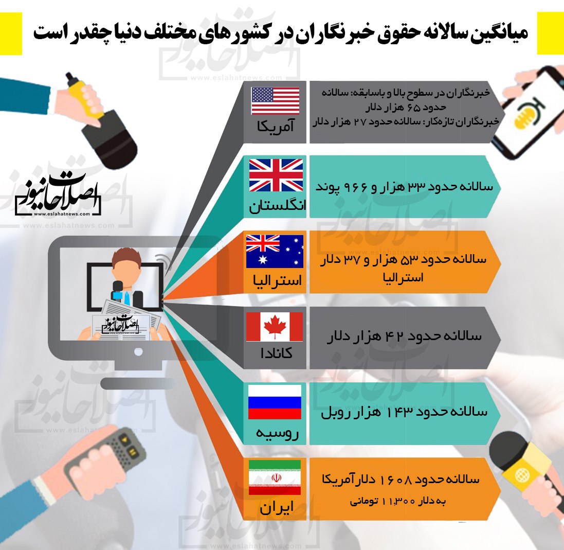 اینفوگرافی| میانگین سالانه حقوق خبرنگاران در کشورهای مختلف دنیا چقدر است؟