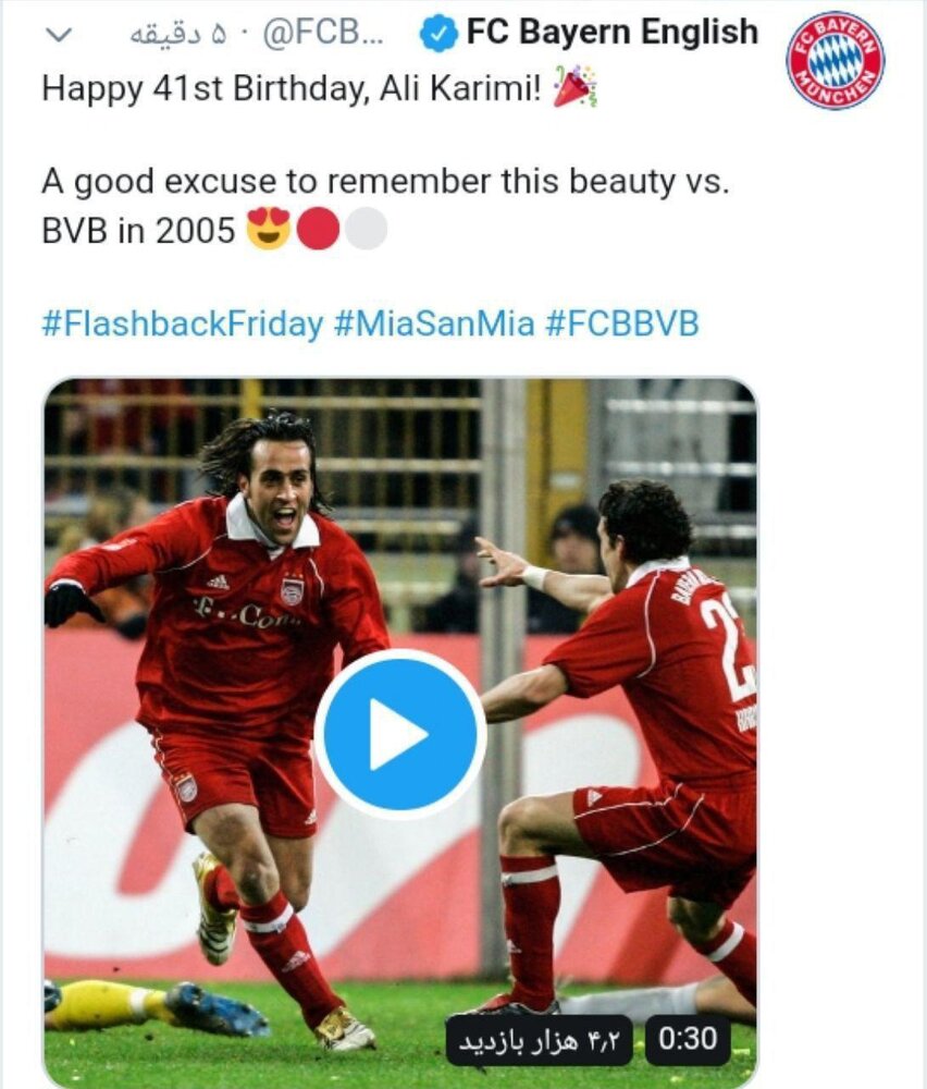 به مناسبت تولد علی کریمی باشگاه بایرن مونیخ آلمان در پیامی تولد جادوگر فوتبال ایران را تبریک گفت.
