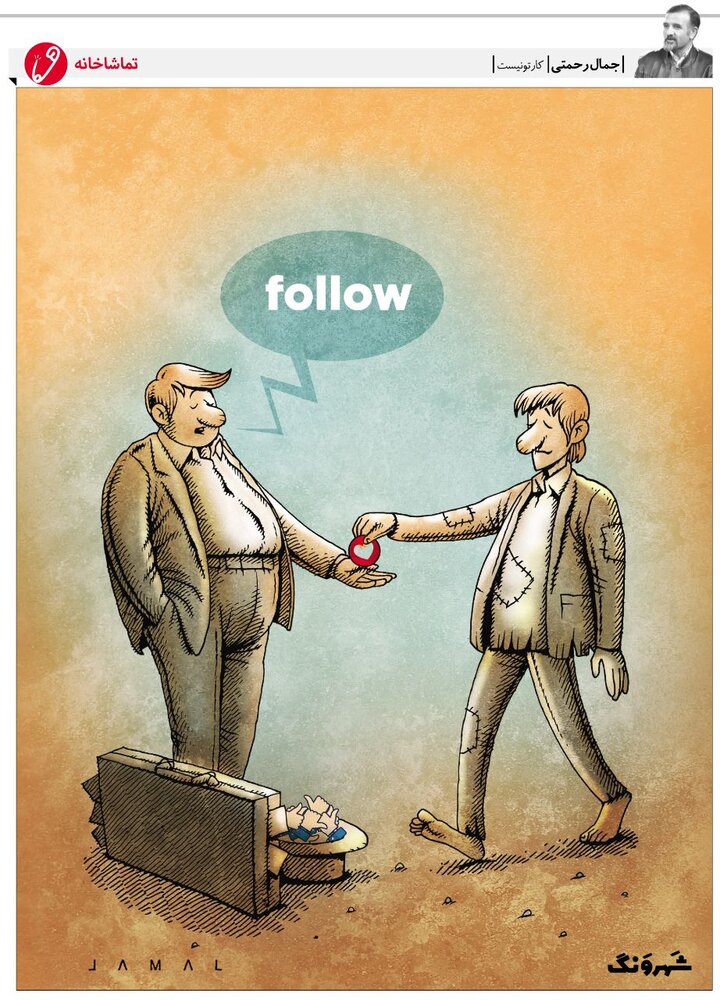 استفاده از ترفندهای مختلف از سوی برخی افراد برای جذب اعضا و دنبال کننده‌های بیشتر در شبکه های اجتماعی، سوژه کارتونی از جمال رحمتی در شهرونگ شد.