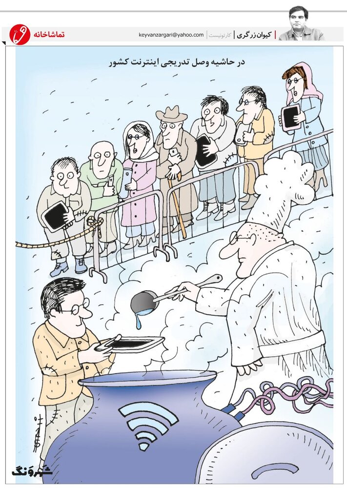 ماجرای قطع شدن اینترنت و وصل شدن تدریجی آن طی روزهای اخیر، سوژه کارتونی از کیوان زرگری در شهرونگ شد.