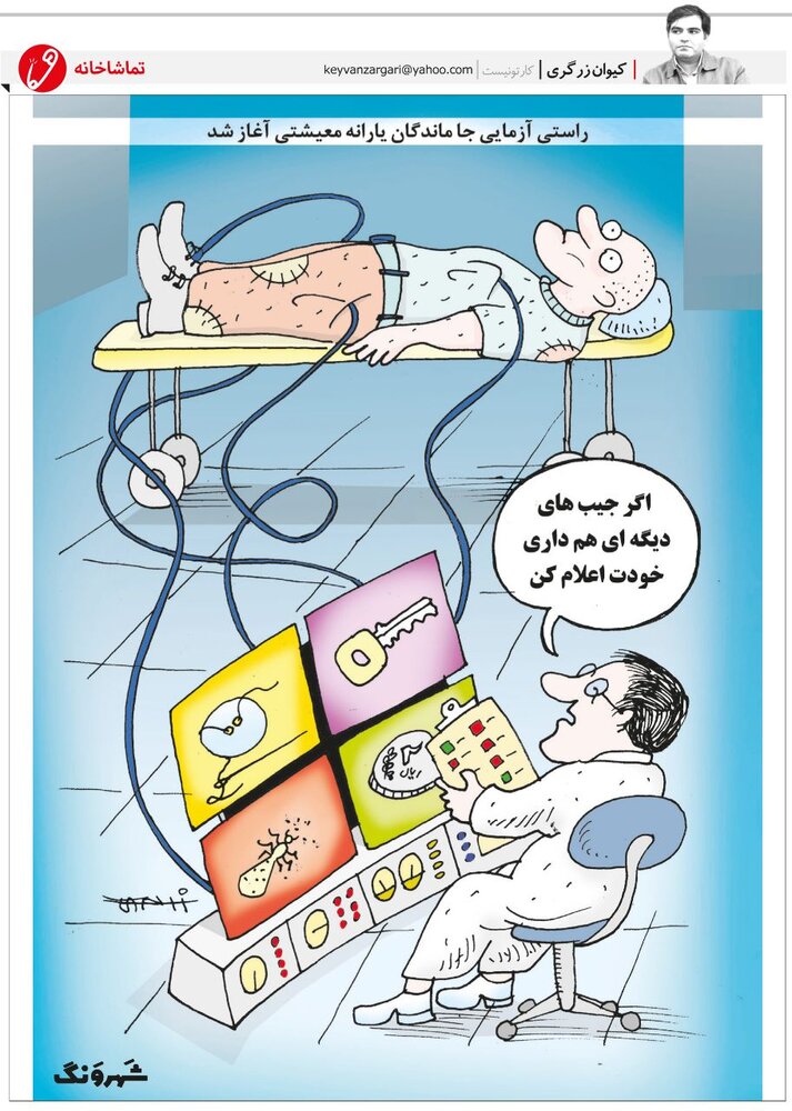 آغاز طرح راستی آزمایی جاماندگان از دریافت یارانه معیشتی، سوژه کارتونی از کیوان زرگری در شهروند شد.