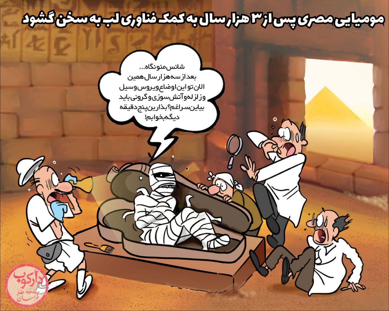 محققان انگلیسی با کمک پرینتر سه بعدی صدای یک مومیایی ٣ هزار ساله را بازیابی کردند. این موضوع، سوژه کارتون صفحه طنز خراسان شد.