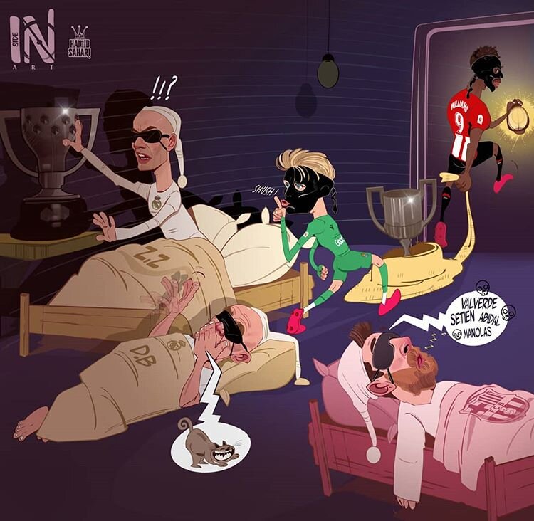 حمید سحری با انتشار کارتونی در صفحه اینساید آرت، به حذف زودهنگام رئال مادرید و بارسلونا در یک چهارم نهایی کوپا دل ری (جام حذفی اسپانیا) پرداخت و نوشت: بارسا و رئال در خواب عمیق بودند که یک جام را از دست دادند.