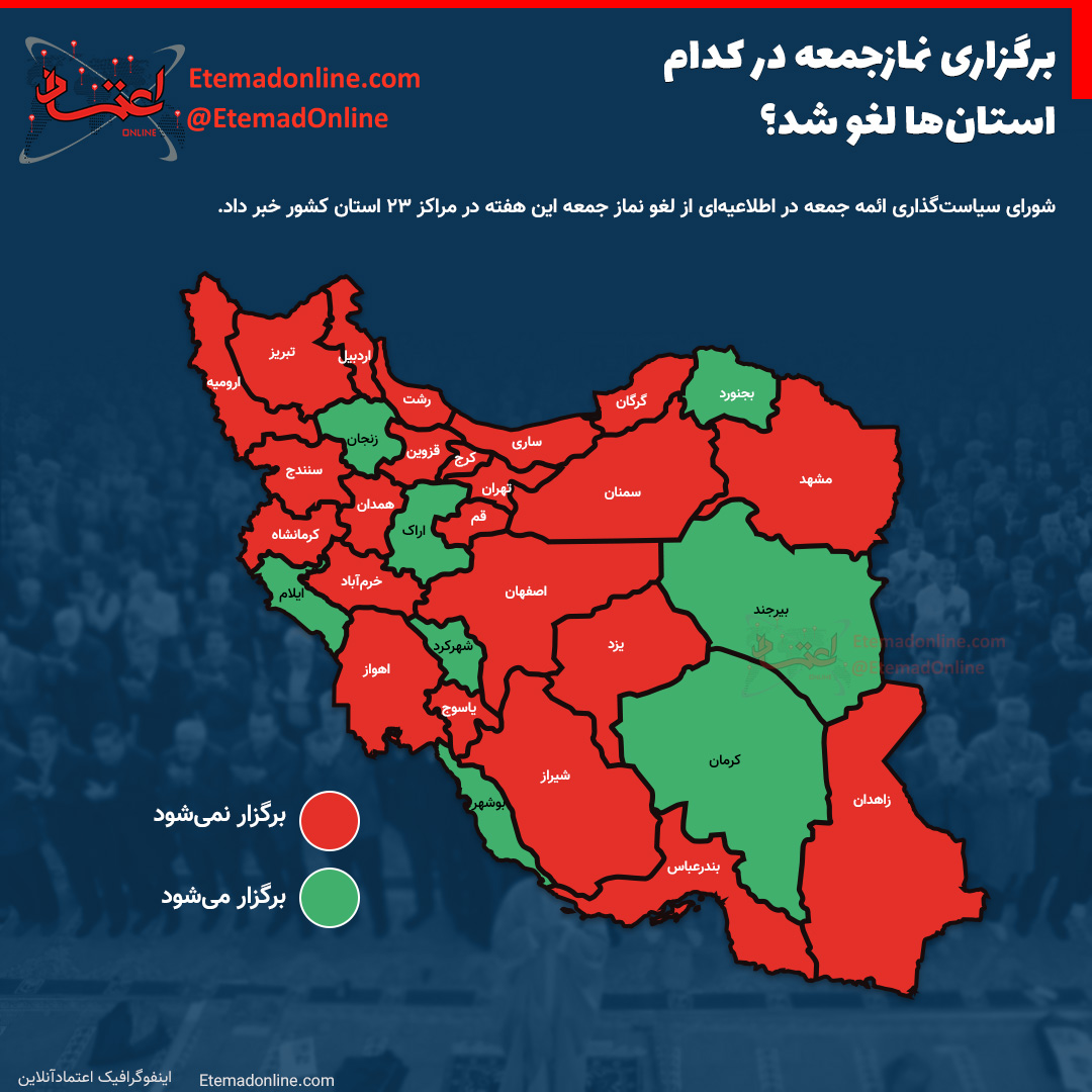 اینفوگرافی| برگزاری نمازجمعه در کدام استانها لغو شد؟