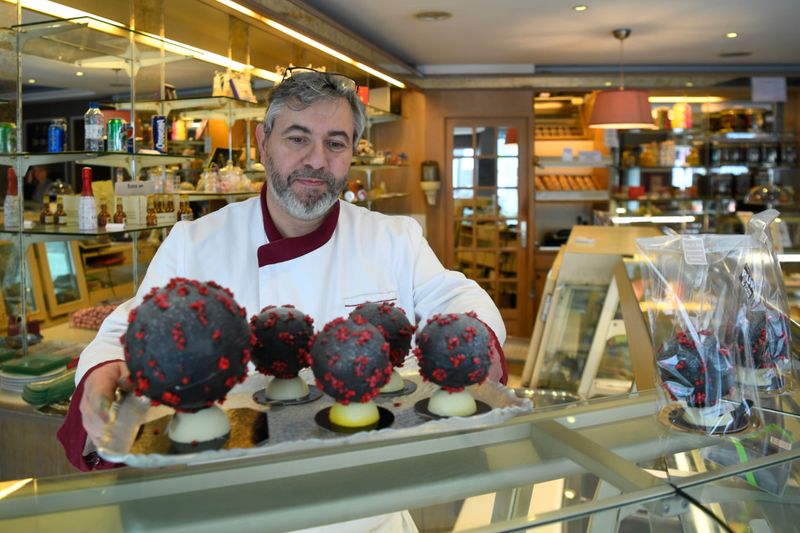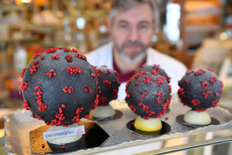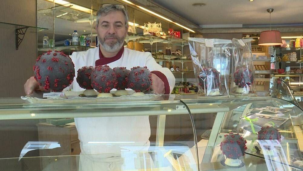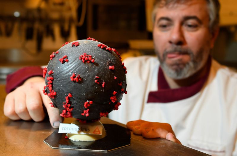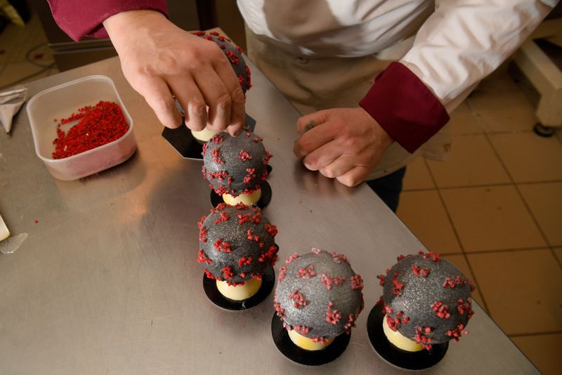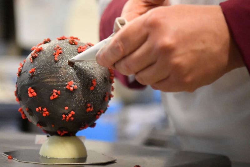 یک قنّاد فرانسوی شکلاتی به شکل ویروس کرونا درست میکند.