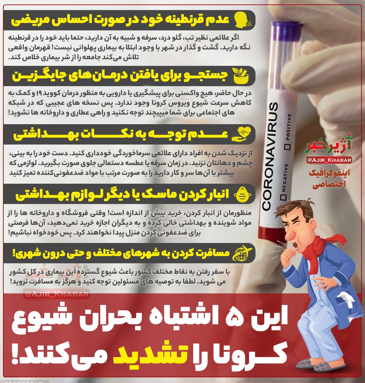 اینفوگرافی| این ۵ اشتباه بحران شیوع کرونا را تشدید میکنند!