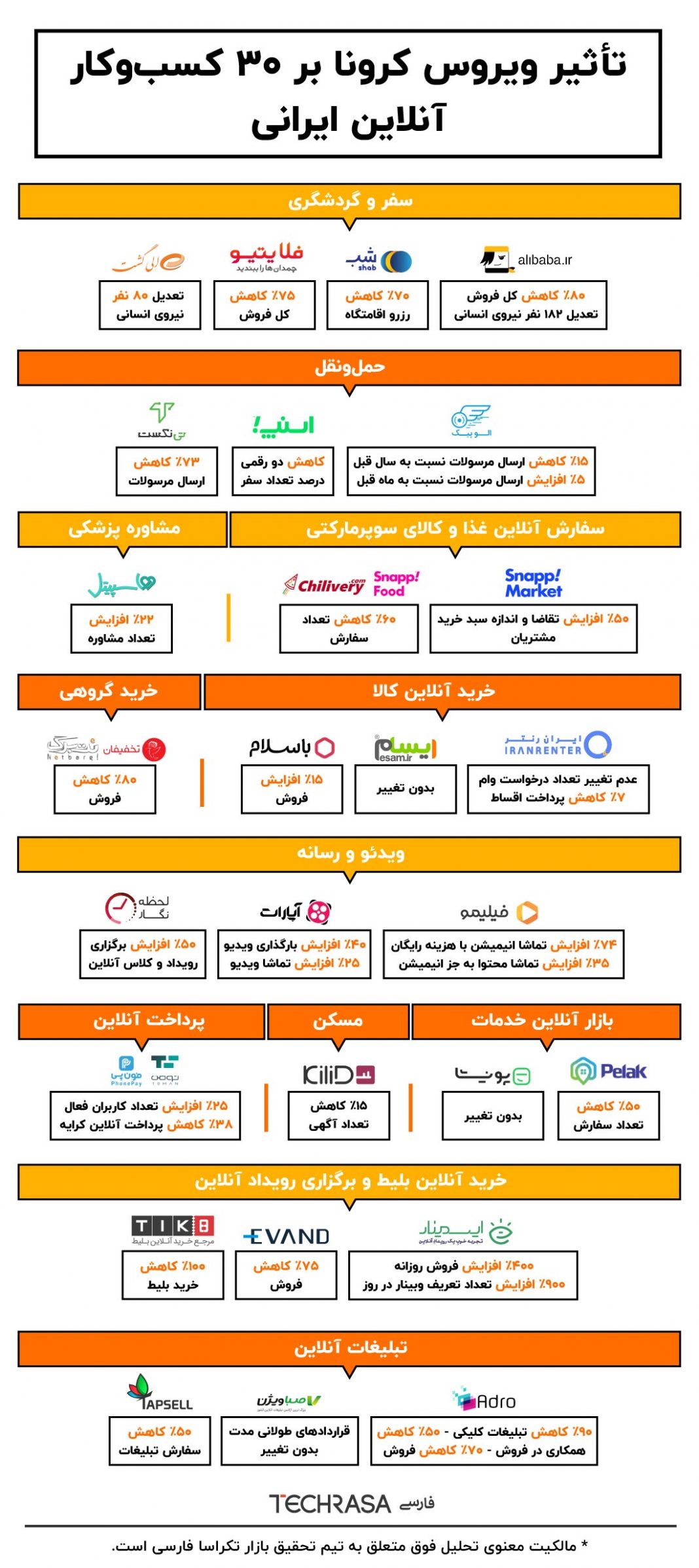 اینفوگرافی| تأثیر ویروس کرونا بر ۳۰ کسب‌وکار آنلاین ایرانی