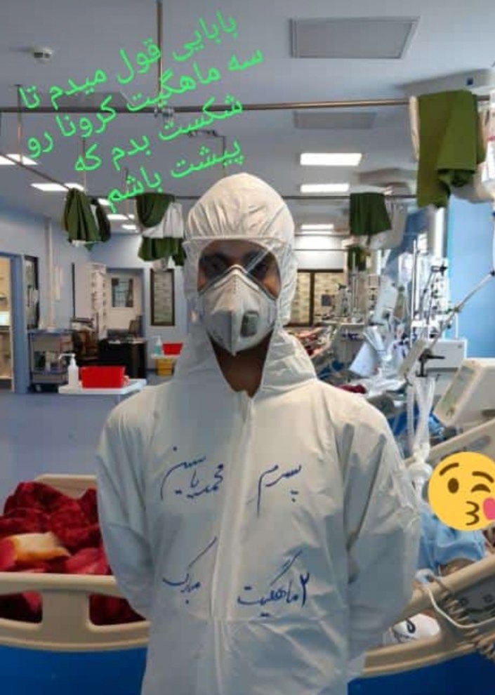 یک پرستار جوان قمی به تازگی صاحب فرزند شده و امروز دو ماهگی پسرش را این گونه جشن گرفته است: «بابایی قول میدم تا سه ماهگیت کرونا رو شکست بدم که پیشت باشم».