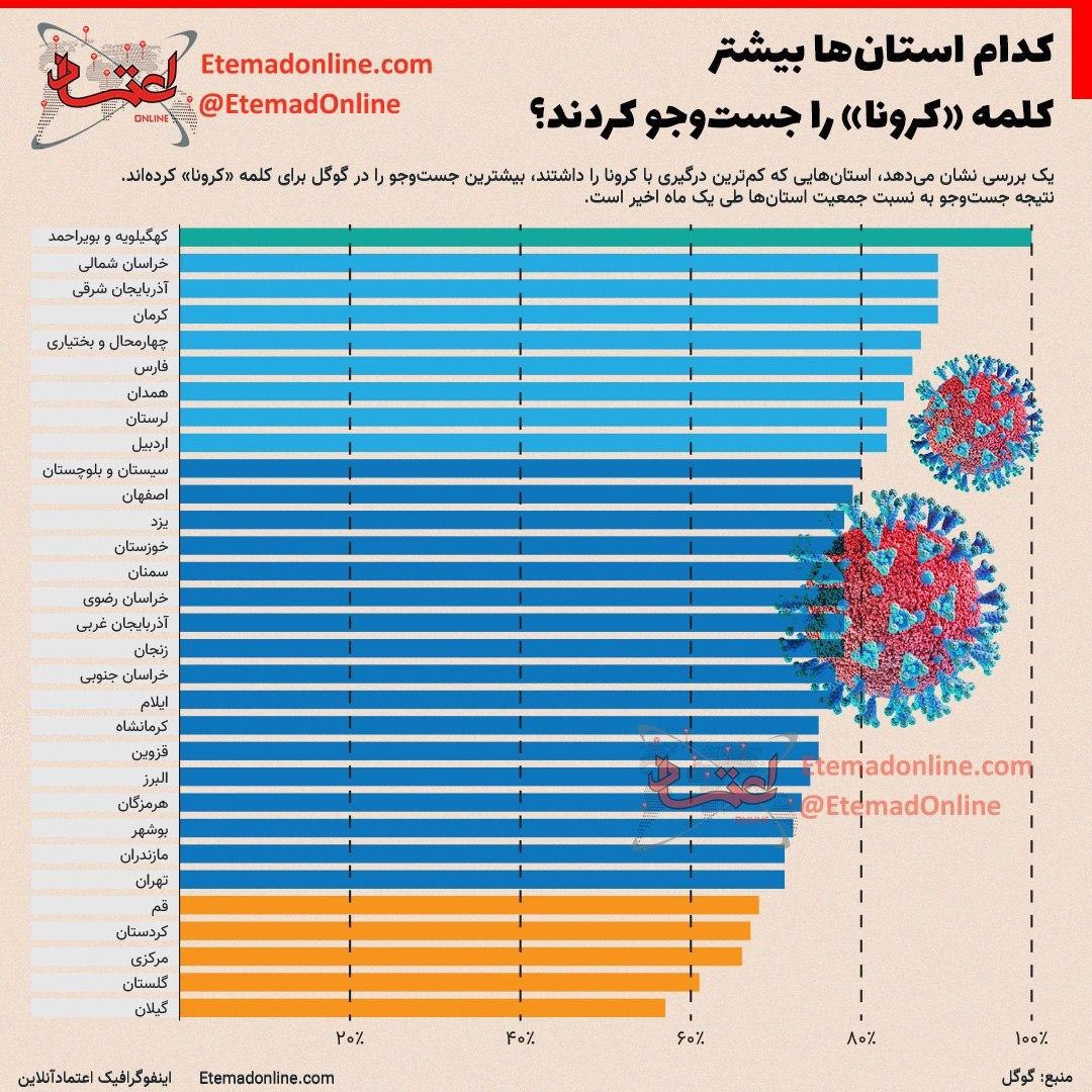 اینفوگرافی| کدام استانها بیشتر کلمه «کرونا» را جستوجو کردند؟