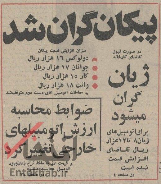 روایت روزنامه «اطلاعات» از گران شدن پیکان در ۱۳ شهریور ۱۳۵۲ را در این گزارش بخوانید.