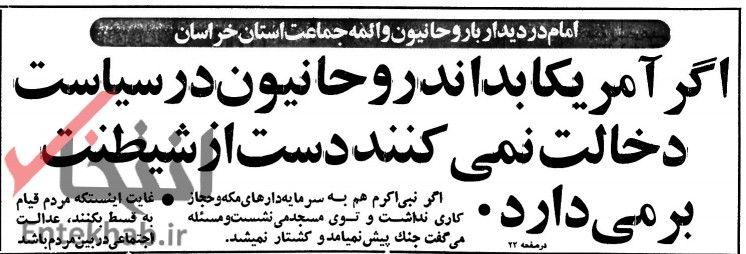 امام خمینی: اگر آمریکا بداند روحانیون در سیاست دخالت نمیکنند دست از شیطنت برمیدارد