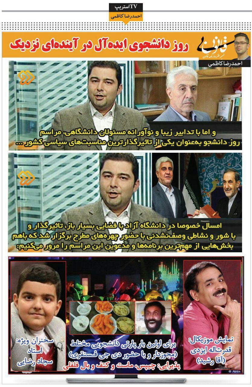 «روز دانشجوی ایده آل در آیندهای نزدیک» عنوان فتوطنز احمدرضا کاظمی در روزنامه قانون است.