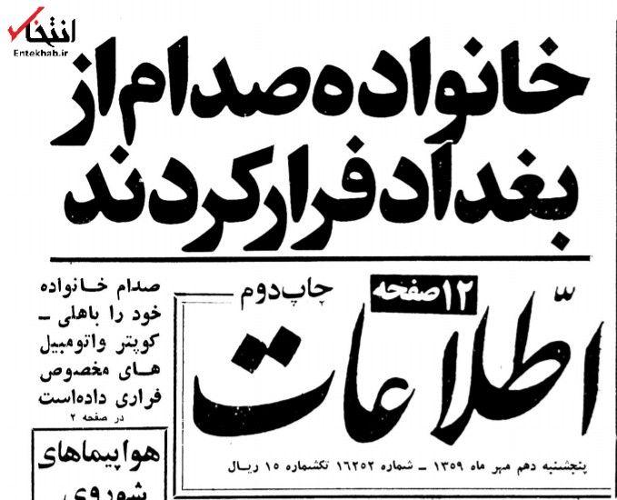 روایت روزنامه «اطلاعات» از فرار خانواده صدام از بغداد، در تاریخ ۱۰ مهر ۱۳۵۹ را در این گزارش بخوانید.