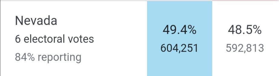 ترامپ در ایالت نوادا ۱۱هزار رأی الکترال کمتر از رقیب خود جو بایدن دارد.