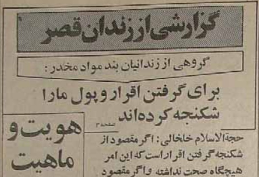 از قول زندانی‌ها این معنا که آن‌ها مورد شکنجه واقع شده‌اند شدیدا تکذیب می‌شود. اگر مقصود از شکنجه گرفتن اقرار است که این امر هیچ‌گاه صحت نداشته و اگر مقصود تعذیر و حد شرعی است ما آن را قبول داریم چون کسی که چند کودک را مبتلا به مواد مخدر کرده و آن‌ها را به هروئین‌فروشی وادار نموده، برای خاطر تنبیه این فرد اجازه داده‌ایم که این‌ها را ۵۰ ضربه یا ۸۰ ضربه شلاق بزنند و این امر در اسلام هست البته با موازین دموکراسی غربی و لیبرال‌منشی جور درنمی‌آید و این به اسم شکنجه نیست. کسانی که بلاتکلیف در زندان‌ها هستند آن‌ها خود نمی‌دانند البته حق هم با آن‌ها است چون تعدادی از آن‌ها محکومیت اعدام دارند و نمی‌توانیم ما به آن‌ها اعلام کنیم که شما به اعدام محکوم شده‌اید و سلول انفرادی هم که نداریم بنابراین ناچار هستیم که آن‌ها را در همان زندان عمومی نگاهداریم تا وضع آن‌ها روشن شود. ما فردی را در داخل زندان به نام حاج ماشاءالله قصاب نداریم و این امر را می‌توانید از آقایان سرحدی‌زاده سوال کنید و آن‌ها وجود شکنجه را در داخل زندان به وسیله روزنامه اطلاعات تکذیب کرده‌اند ولی مع‌الاسف مشاهده می‌شود در روزنامه انقلاب اسلامی مطالب را وارونه جلوه داده‌اند. این‌ها عین حقیقتی است که من می‌گویم، روی این اصل من اعلام می‌کنم هرکس که ادعای شکنجه در زندان‌ها را دارد بیاید تا به ما نشان دهد. البته افراد باند قاچاق و هروئینی‌ها را نباید دست‌کم گرفت و این‌ها به صرف تعذیر و حد شرعی هیچ‌گاه به راه مستقیم وارد نمی‌شوند و همین روزها که زمان جنگ است از تاریکی شب استفاده می‌کنند و هروئین و تریاک را در سطح وسیع تهران پخش می‌کنند. ما قاطعانه این‌ها را دنبال می‌کنیم و به این حرف‌ها هیچ‌گاه گوش‌مان بدهکار نیست. اگر مملکت بخواهد وضع منظم پیدا کند باید درباره معتادین و باند قاچاق شدت عمل نشان داد و الا اگر بخواهیم تعدادی از آن‌ها را بگیریم و احترام بکنیم و بعد از دو ماه آن‌ها را آزاد کنیم این همان وضع سابق است که هیچ‌گاه به سامان نمی‌رسد و اگر روزنامه‌ها و یا مقامات و هر مسئول دیگر بخواهند از این مطالب نادرست درج کنند ما آن عوامل را شناسایی کرده و علیه آن‌ها اعلام جرم خواهیم کرد. ما شب و روز این همه زحمت می‌کشیم و خودمان را به آب و آتش می‌زنیم تا توانسته‌ایم این اژدها و این گرد شیطانی را گرفته و به قفس بیندازیم و اگر ناراحتی‌های زیادی ایجاد شود معلوم است که با استعفای من این قفس شکسته می‌شود و این غول دوباره بیرون می‌آید آن وقت است که شما باز وضع دل‌خراش خیابان جمشید و قوام‌دفتر و میدان گمرک و هفت‌حوض و گود عرب‌ها را می‌بینید و از این رهگذر هزاران دختر و پسر به انحطاط کشیده می‌شوند.