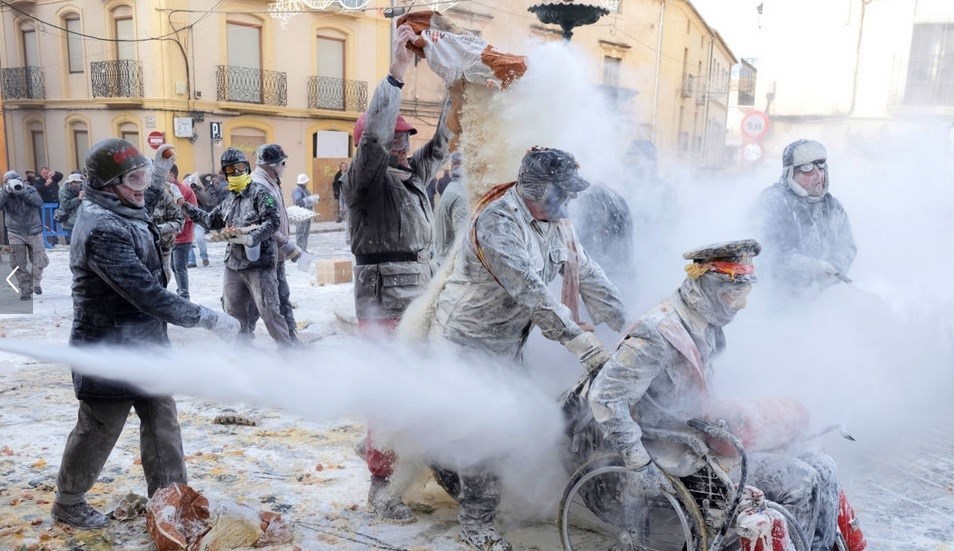 مردم اسپانیا با آرد و تخممرغ در جشنواره سنتی به جنگ یکدیگر رفتند.