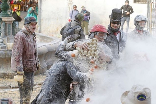 در این جشنواره مردم با آرد و تخم مرغ به نبرد یکدیگر میروند و از خجالت هم در میآیند.