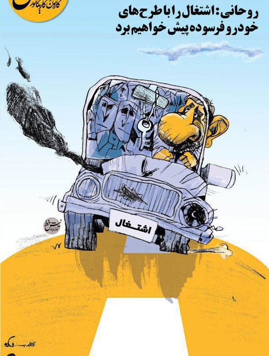 طنز و کاریکاتور > کاریکاتور - «رئیس جمهور: اشتغال را با طرح های خودرو فرسوده پیش خواهیم برد» این اظهار نظر سوژه حامد بذرافکن در نیشخط شده است.