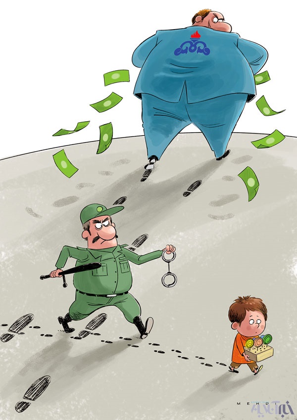 در حاشیه اعتراض مردم به برخورد با کودکان آبنبات فروش در بروجرد و فرار اختلاس‌گر 100 میلیاردی وزارت نفت در سه ساعت! خبرآنلاین این کاریکاتور را منتشر کرد.