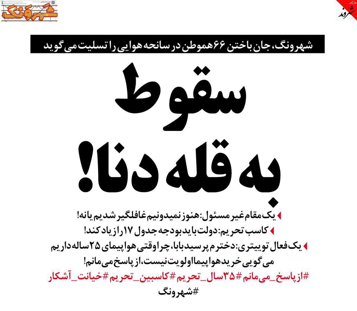 کنایه‌های روزنامه شهروند به برخی حواشی حادثه تلخ سقوط هواپیمای تهران-یاسوج!