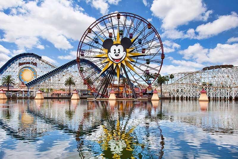مشهورترین موش جهان، یعنی میکی و دوستانش از سال 1955 تا کنون خیابان اصلی آمریکا در شهر آناهایم را به خود اختصاص داده‌اند. پارک اصلی که توسط والت دیزنی طراحی شده بود، به خوبی نوستالژی را با تکنولوژی روز ترکیب کرده است. برای تجربه این نوستالوژی ناب، به سوی سواری «پیتر پنز فلایت» بروید که ارزش دارد در صف طولانی‌اش منتظر بمانید. سپس به سراغ بخش «ماجراجویی ایندیانا جونز» رفته و یکی از سواری‌های رام نشده در عمق معبد نفرین شده را تجربه کنید.